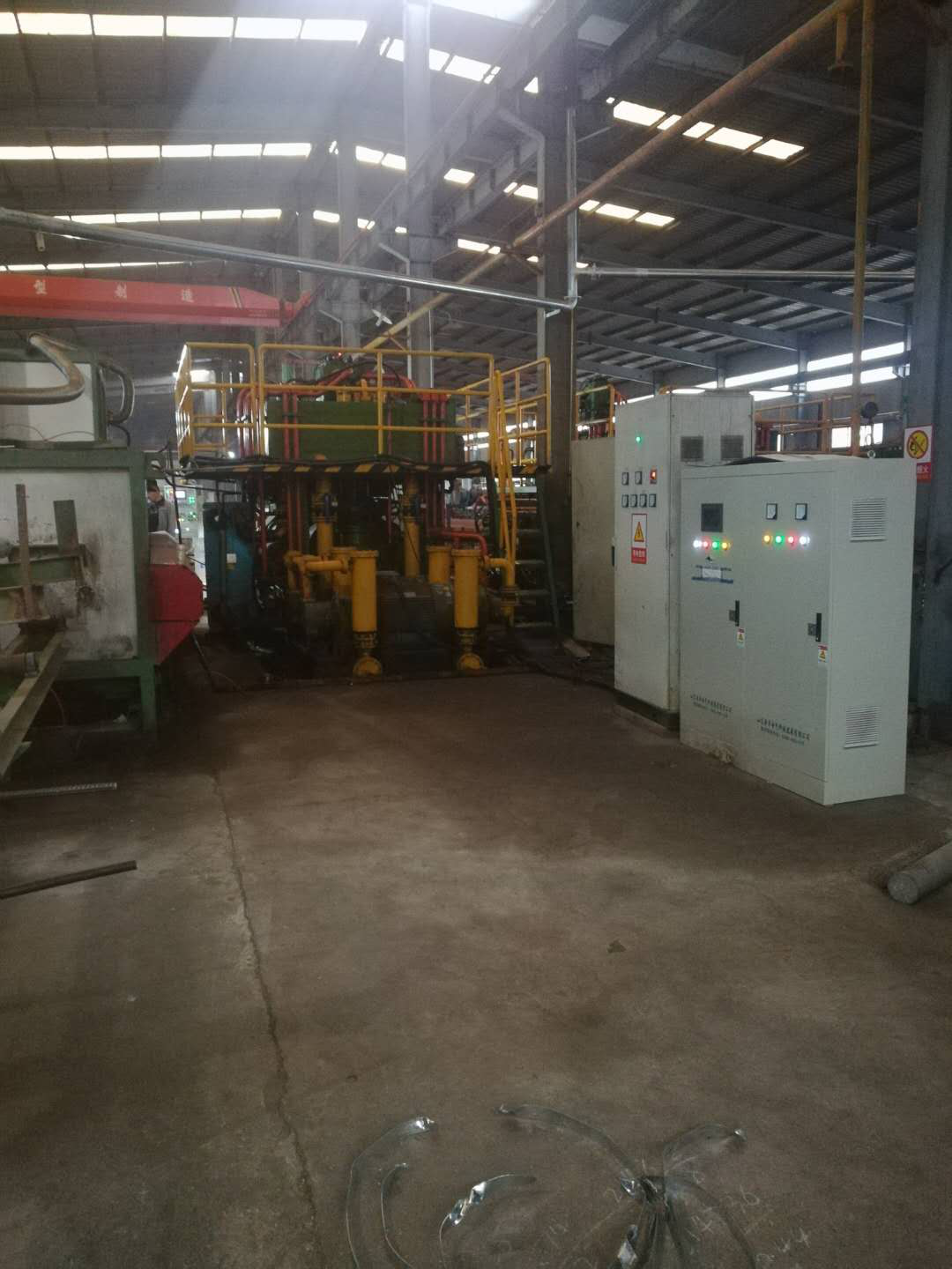 隨著經(jīng)濟(jì)的發(fā)展,各行各業(yè)對(duì)各種型材的需求日益增加,作為有色金屬(鋅、鋁、銅等)行業(yè)的主要加工設(shè)備型材擠壓機(jī)數(shù)量也是越來越多?,F(xiàn)有的型材擠壓機(jī)械與很多使用液壓為動(dòng)力的設(shè)備一樣,往往電機(jī)和油路按最大容量設(shè)計(jì),除了在鎖模、擠壓過程需要較大的壓力外,很多時(shí)候電機(jī)的工頻運(yùn)轉(zhuǎn)只是浪費(fèi)了大量的電能。針對(duì)此種情況,我們以節(jié)能為目的對(duì)鋁型材擠壓機(jī)進(jìn)行了節(jié)能改造,由我公司自主研發(fā)、生產(chǎn)的鋁型材擠壓機(jī)節(jié)能控制裝置已在客戶現(xiàn)場(chǎng)通過驗(yàn)證,節(jié)能效果顯著。