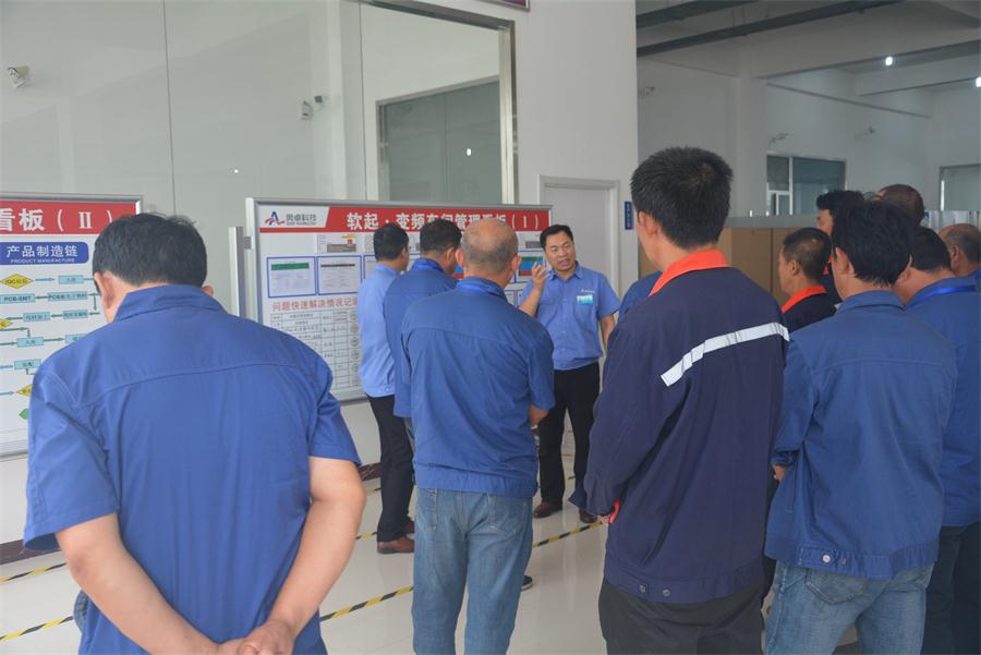 張慶平總經(jīng)理首先介紹了公司的基本概況、發(fā)展歷程、企業(yè)文化建設(shè)、核心產(chǎn)品及技術(shù),并對(duì)核心產(chǎn)品和技術(shù)在行業(yè)中的應(yīng)用進(jìn)行了重點(diǎn)介紹。張總表示:奧卓科技自成立以來(lái),一直致力于智能、節(jié)能自動(dòng)化產(chǎn)品的研發(fā)、生產(chǎn),現(xiàn)擁有產(chǎn)品研發(fā)部、項(xiàng)目部、智能制造部、國(guó)際貿(mào)易部四個(gè)事業(yè)部,通過(guò)了ISO9001質(zhì)量管理體系認(rèn)證、國(guó)際歐盟CE認(rèn)證,獲得國(guó)家專(zhuān)利、軟件著作權(quán)等知識(shí)產(chǎn)權(quán)30余項(xiàng),被科技部認(rèn)定為科技型中小企業(yè),具有獨(dú)立的國(guó)際進(jìn)出口經(jīng)營(yíng)權(quán),現(xiàn)為“中國(guó)制造網(wǎng)的SGS認(rèn)證供應(yīng)商”,先后榮獲“高新技術(shù)企業(yè)”、“濰坊市變頻器工程技術(shù)研究中心”,誠(chéng)信立企、品牌樹(shù)企、技術(shù)強(qiáng)企的理念最終實(shí)現(xiàn)“創(chuàng)國(guó)際品牌、鑄百年企業(yè)”的愿景規(guī)劃。管理總監(jiān)張曉隨后詳細(xì)的介紹了公司管理的整體模式,詳細(xì)講解了精益化7S現(xiàn)場(chǎng)管理,安全、質(zhì)量服務(wù)體系等相關(guān)內(nèi)容。