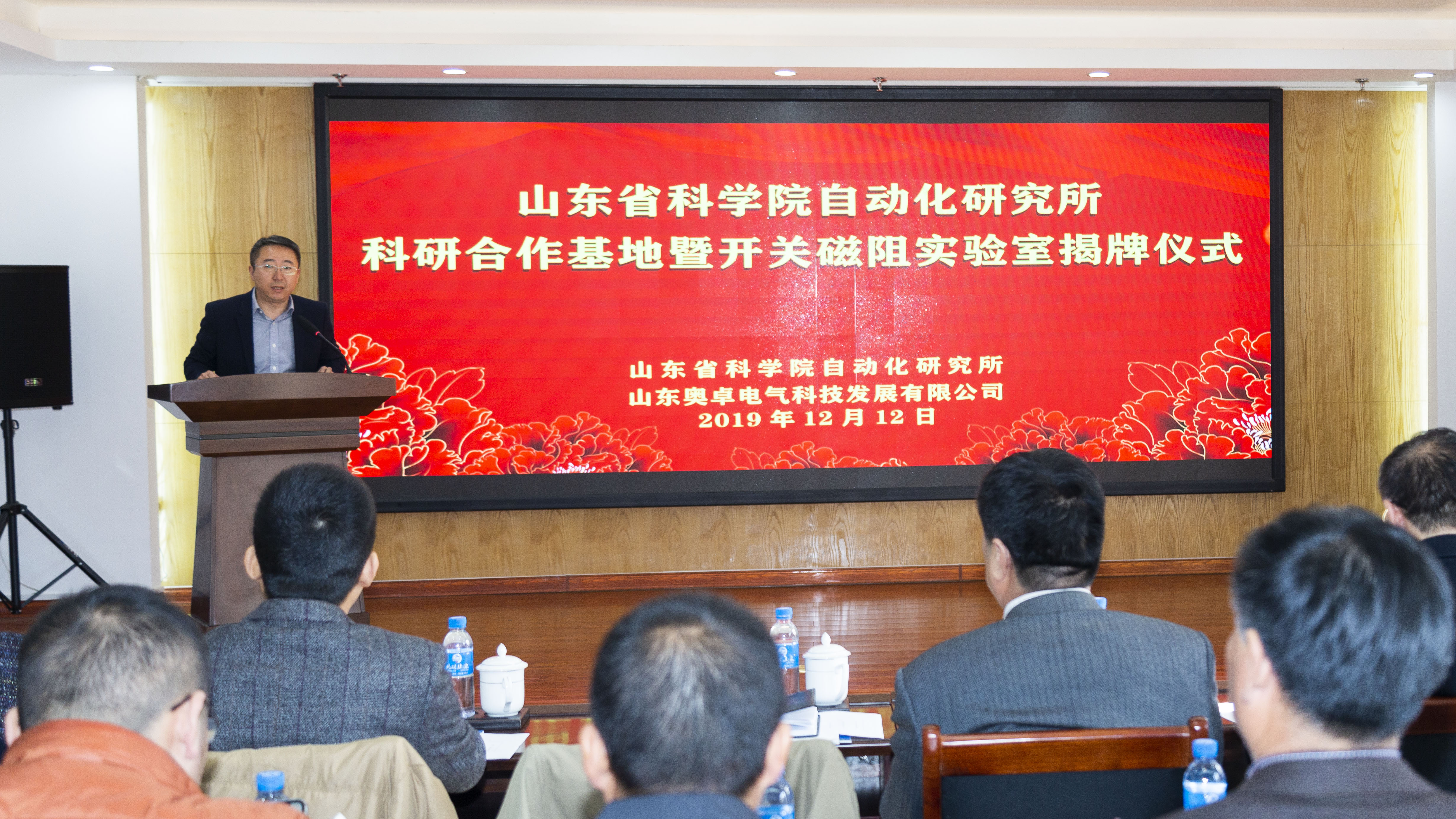 2019年12月12日上午11時,山東奧卓電氣科技發(fā)展有限公司與山東省科學(xué)院自動化研究所科研合作基地暨開關(guān)磁阻實驗室揭牌儀式在山東測繪地理信息產(chǎn)業(yè)園小鎮(zhèn)大廈隆重舉行。