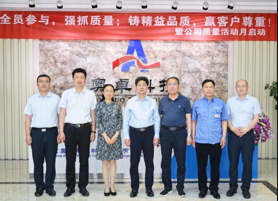 2021年6月4日下午,省人社廳二級(jí)巡視員徐國(guó)鈞、省人社廳機(jī)關(guān)黨委副書(shū)記及機(jī)關(guān)紀(jì)委書(shū)記薛令偉、省人社廳執(zhí)法監(jiān)察局三級(jí)主任科員張羽、山東工業(yè)技師學(xué)院黨委書(shū)記孫科順、山東工業(yè)技師學(xué)院院長(zhǎng)王瑩、山東工業(yè)技師學(xué)院辦公室主任仵強(qiáng)蒞臨山東奧卓電氣科技發(fā)展有限公司就產(chǎn)教融合相關(guān)事宜開(kāi)展指導(dǎo)工作。