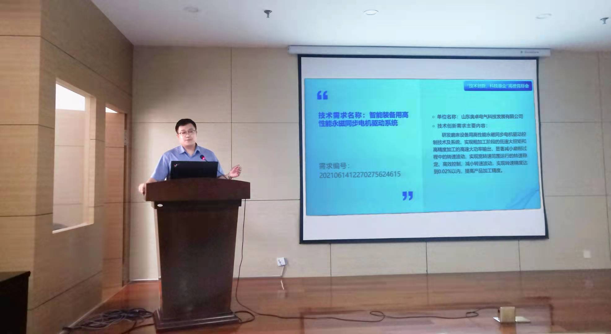 為助力企業(yè)發(fā)展,加快企業(yè)創(chuàng)新,實(shí)現(xiàn)地區(qū)經(jīng)濟(jì)高質(zhì)量發(fā)展,2021年6月29日,以“技術(shù)創(chuàng)新、科技惠企”為主題的現(xiàn)場(chǎng)揭榜競(jìng)標(biāo)會(huì)在山東省科學(xué)院舉行。濰坊市工信局服務(wù)與創(chuàng)新創(chuàng)業(yè)指導(dǎo)科一級(jí)主任科員(負(fù)責(zé)人)付金路帶領(lǐng)山東奧卓電氣科技發(fā)展有限公司參加了本次現(xiàn)場(chǎng)揭榜競(jìng)標(biāo)會(huì),山東省工信廳創(chuàng)新創(chuàng)業(yè)指導(dǎo)處副處長(zhǎng)張旸出席會(huì)議并致辭。