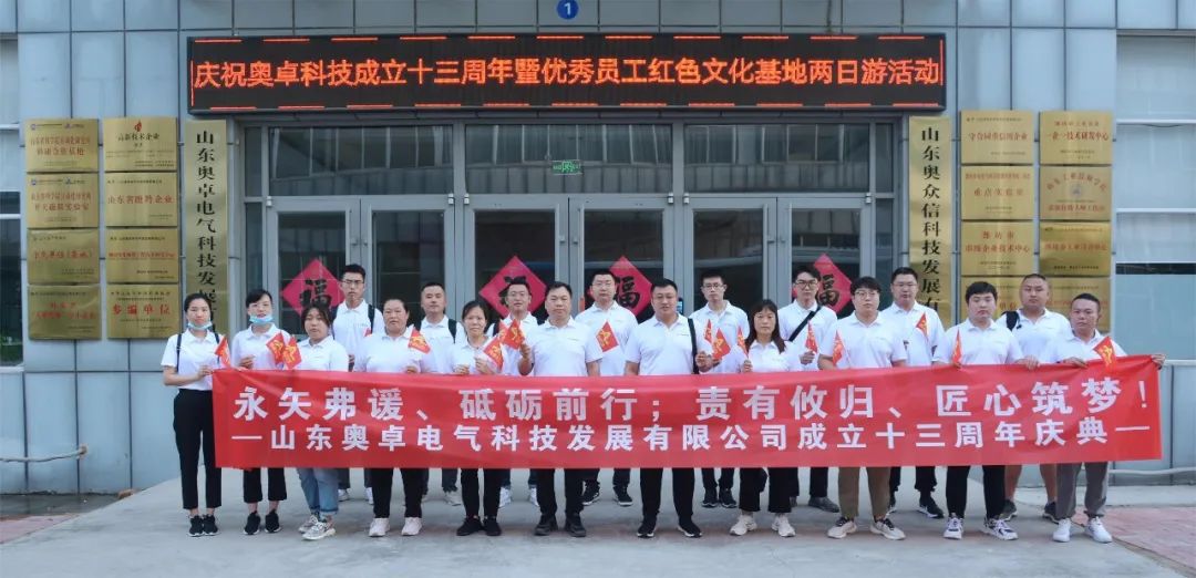 2022年7月,值公司成立十三周年之際,為加強(qiáng)團(tuán)隊(duì)建設(shè),提高員工的榮譽(yù)感、歸屬感,助推公司更快、更高發(fā)展,山東奧卓電氣科技發(fā)展有限公司開展了以“永矢弗諼、砥礪前行;責(zé)有攸歸、匠心筑夢(mèng)!”為主題的2022年度廠慶月系列活動(dòng)。在第五屆“奧卓杯”籃球友誼賽、第三屆部門形象展示大賽、廠慶月“先進(jìn)一線工作者”評(píng)選等活動(dòng)圓滿落幕后,奧卓科技于16日、17日舉辦了優(yōu)秀員工代表紅色文化基地兩日游活動(dòng)。